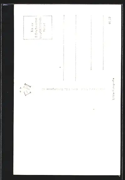 Personenbezogene Daten auf der Rückseite der Karte wurden durch blauen Textmarker unkenntlich gemacht. Die blauen Stellen sind auf die Vorderseite durchgeweicht und wirken sich negativ auf das Postkartenfoto aus