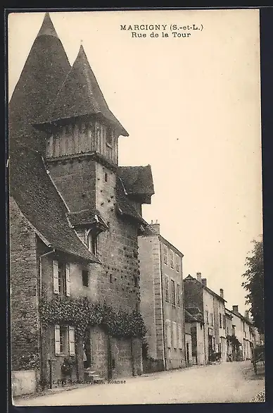AK Marcigny, Rue de la Tour avec bâtiments historiques