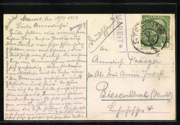 alte Ansichtskarte, gelaufen 1913, Stempelspur, guter Zustand