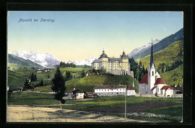 AK Mareit bei Sterzing, Ortspartie mit Kirche