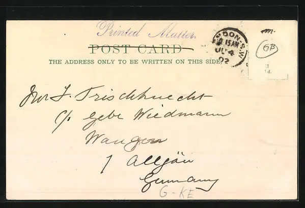 alte Ansichtskarte, gelaufen, Briefmarke entfernt, rückseitig Oberflächenschaden, Stempelspur, guter Zustand