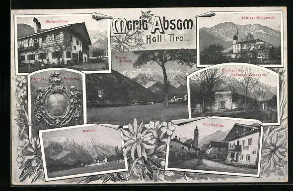 AK Maria Absam, Stainerhaus, Kirchplatz, Schloss Krippach
