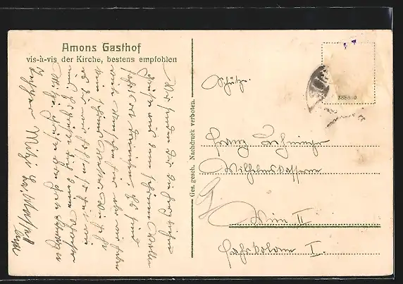 alte Ansichtskarte, gelaufen, Briefmarke entfernt, rückseitig Oberflächenschaden, guter Zustand