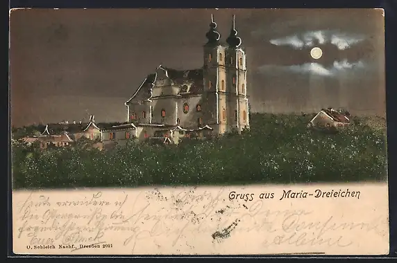 AK Maria-Dreieichen, Kirche bei Mondschein