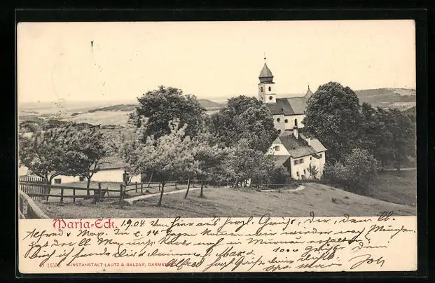 AK Maria-Eck, Ortspartie mit Kirche