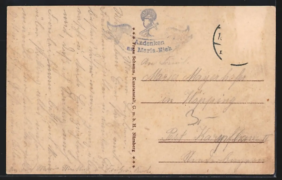 alte Ansichtskarte, gelaufen, Briefmarke entfernt, rückseitig Oberflächenschaden, guter Zustand