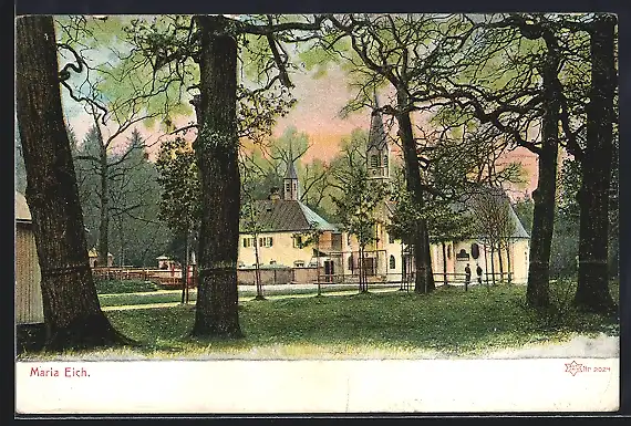 AK Maria Eich, Blick zur Kirche mit Nebengebäude