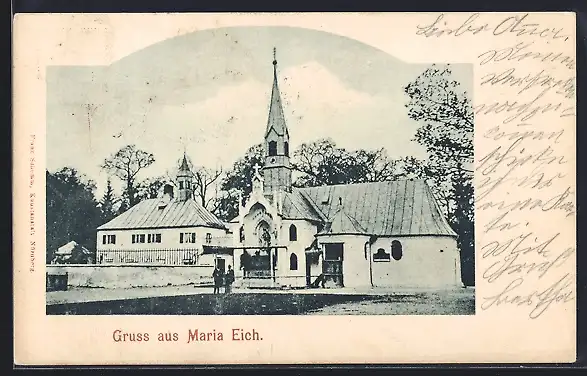 AK Maria Eich, Strassenpartie mit Kirche