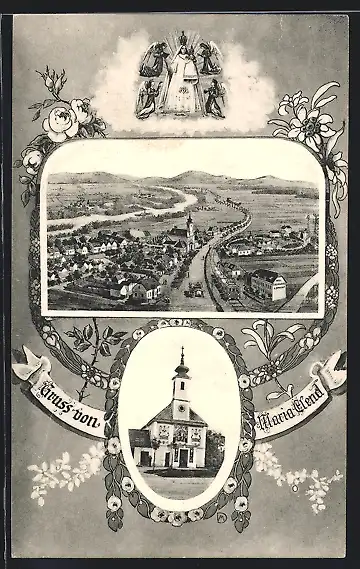 AK Maria Ellend, Teilansicht mit Kirche, Gnadenbild