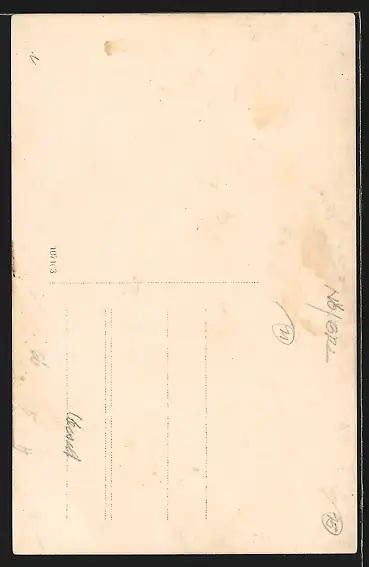 Personenbezogene Daten auf der Rückseite der Karte wurden durch blauen Textmarker unkenntlich gemacht. Die blauen Stellen sind auf die Vorderseite durchgeweicht und wirken sich negativ auf das Postkartenfoto aus