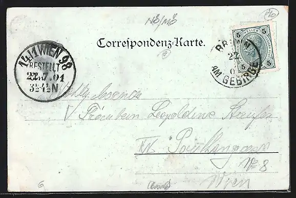 gelaufen 1901, Eckknick re. unten, guter Zustand