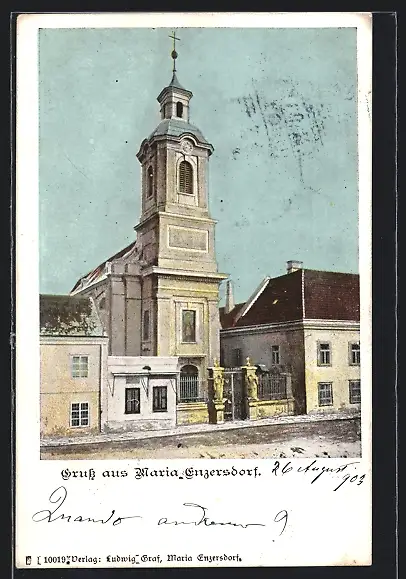 AK Maria-Enzersdorf, Strassenpartie mit Kirche