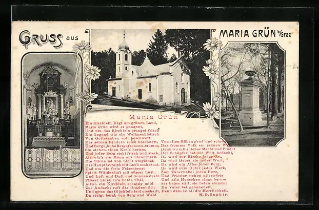 AK Maria Grün b. Graz, Blick auf die Kirche, Altar