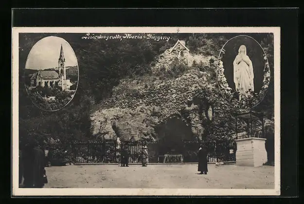 AK Maria-Gugging, Lourdes-Grotte, Kirche und Marienstatue