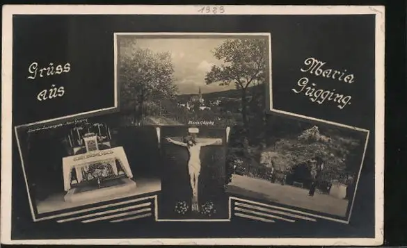 AK Maria Gugging, Totalansicht mit Jesus am Kreuz