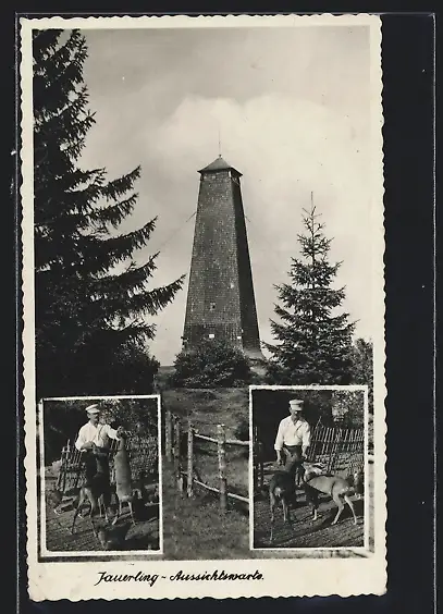 AK Maria Laach, Aussichtswarte auf dem Jauerling, Wärter mit Rehen