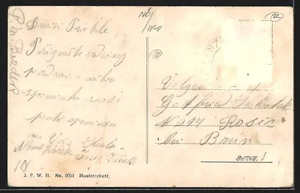 alte Ansichtskarte, gelaufen, Briefmarke entfernt, rückseitig Oberflächenschaden, guter Zustand
