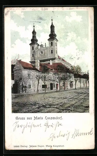 AK Maria Lanzendorf, Blick zur Wallfahrtskirche