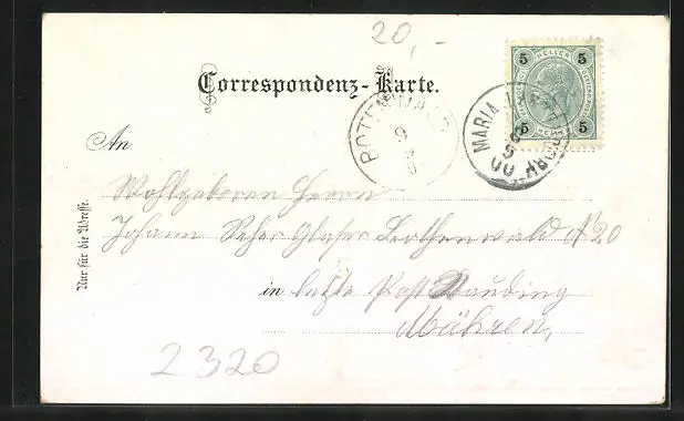 alte Ansichtskarte, gelaufen 1900, guter Zustand