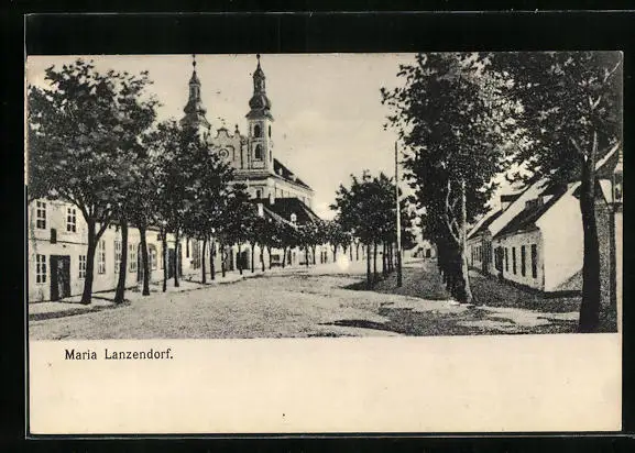 AK Maria Lanzendorf, Ortspartie mit Kirche