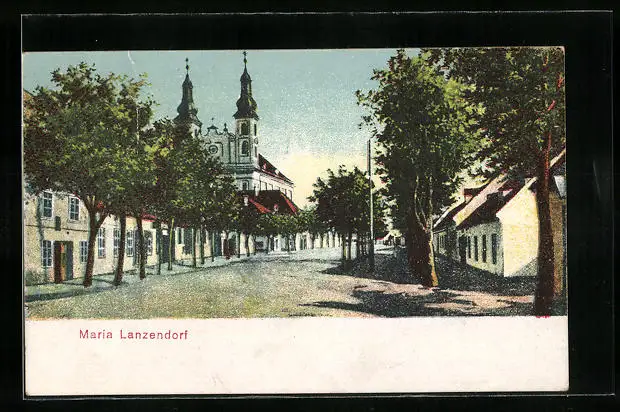 AK Maria Lanzendorf, Strassenpartie mit Kirche