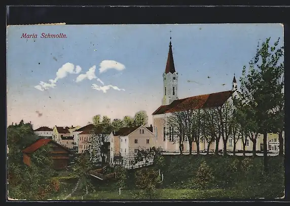 AK Maria Schmolln, Ortspartie mit der Kirche