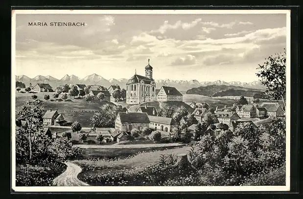 AK Maria Steinbach, Ortsansicht mit Berggipfeln
