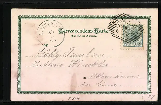 alte Ansichtskarte, gelaufen 1901, Eckknick re. oben, guter Zustand