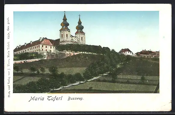 AK Maria Taferl, Bussweg, Ortsansicht mit Kirche, mit goldenen Fenstern