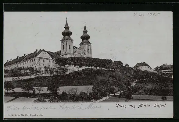 AK Maria Taferl, Doppelturm-Kirche mit Anlage