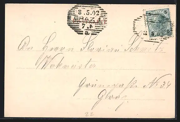 alte Ansichtskarte, gelaufen 1902, Stempelspur, guter Zustand