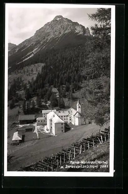 AK Maria-Waldrast, Ortsansicht mit Serlesspitze