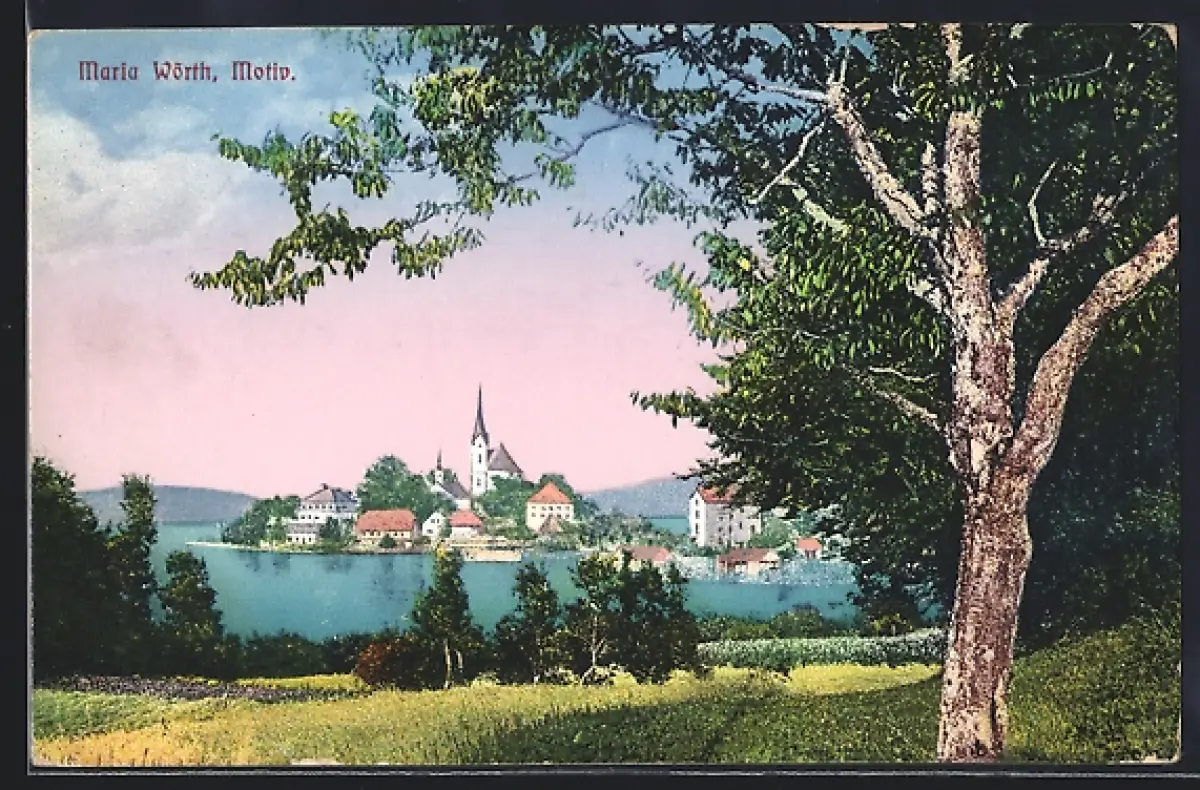 AK Maria Wörth, Uferpartie mit Kirche