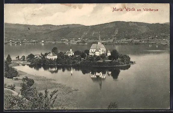 AK Maria Wörth am Wörther-See, Ortspartie mit Kirche