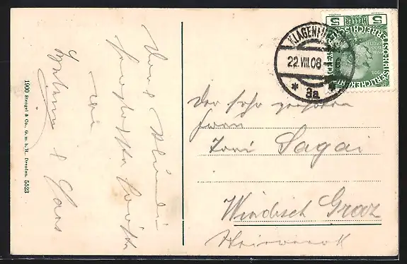 alte Ansichtskarte, gelaufen 1908, guter Zustand
