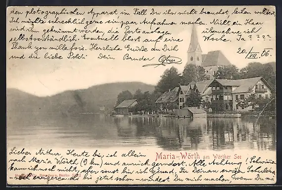 AK Maria Wörth am Wörther-See, Uferpartie mit Kirche