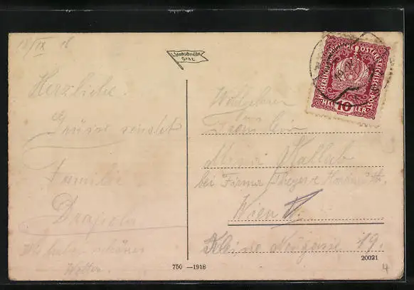 alte Ansichtskarte, gelaufen 1918, Eckschaden li., guter Zustand