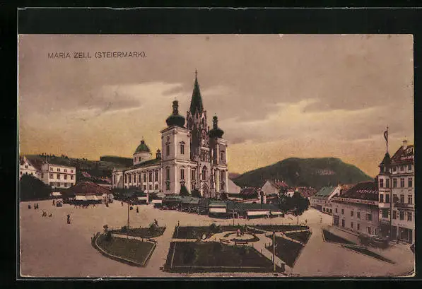 AK Maria Zell, Kirche mit Anlage, Markt