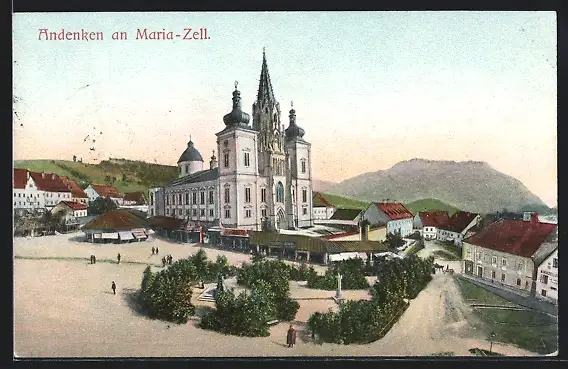 AK Maria-Zell, Ortspartie mit Kirche