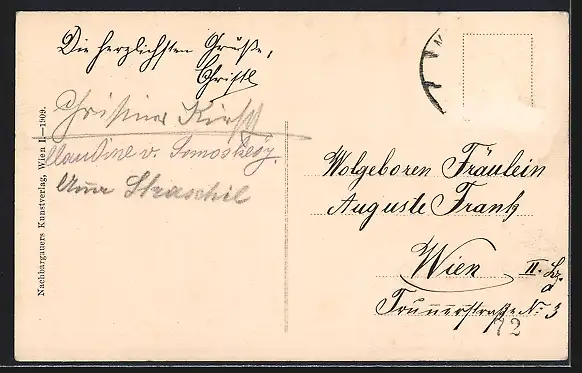 alte Ansichtskarte, gelaufen, Briefmarke entfernt, rückseitig Oberflächenschaden, guter Zustand