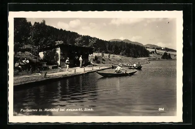 AK Mariahof b. Neumarkt, Furtnersee mit Ruderern