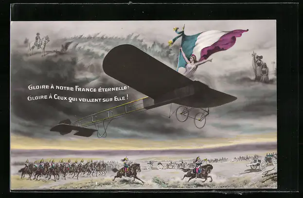 AK Marianne fliegt über stürmendem Militär, Gloire à notre France éternelle