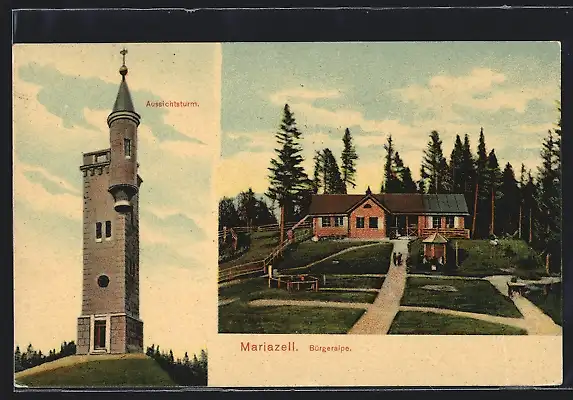 AK Mariazell, Gasthof Bürgeralpe, Aussichtsturm