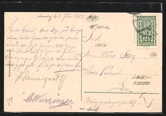 alte Ansichtskarte, gelaufen 1922, guter Zustand