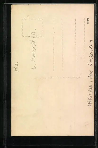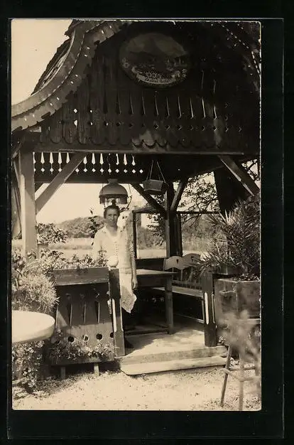AK Mariazell, Haus Waldesruh, Offenes Holzhäuschen mit Dach