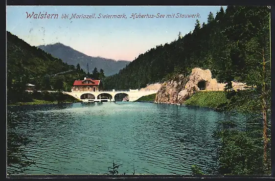 AK Mariazell, Hubertus-See mit Stauwerk in der Walstern