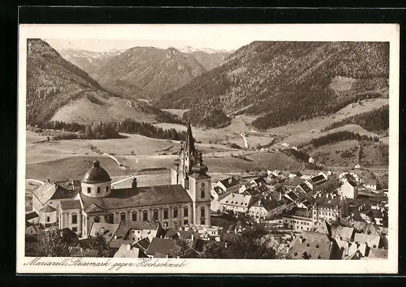 AK Mariazell, Ortsansicht gegen Hochschwab