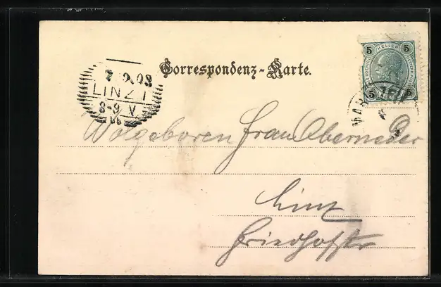 gelaufen 1908, Einriss unten mittig, guter Zustand