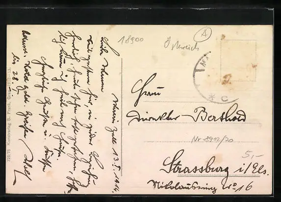 alte Ansichtskarte, gelaufen, Briefmarke entfernt, rückseitig Klebe- und Papierreste, guter Zustand