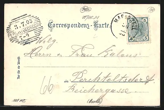 gelaufen 1905, Eckknick unten re., guter Zustand